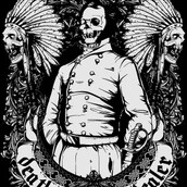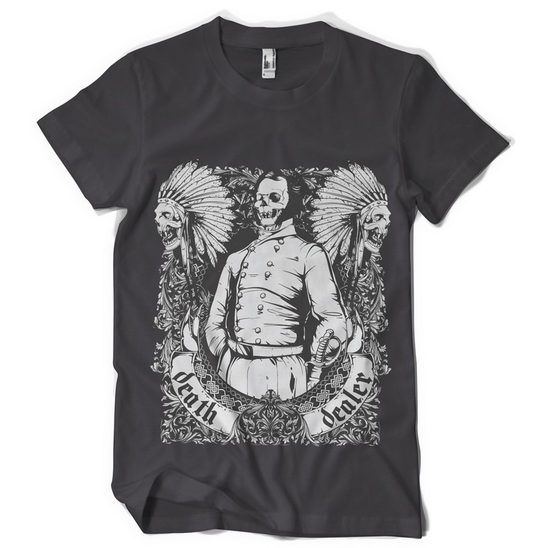 Death dealer digital design template in vector format, featuring detailed indian and a lord of skulls now available for Adobe Illustrator, Adobe Photoshop and Corel Draw and can be used for digital printing and screenprinting .