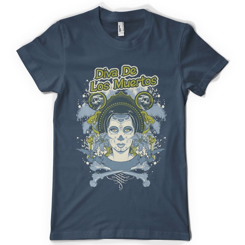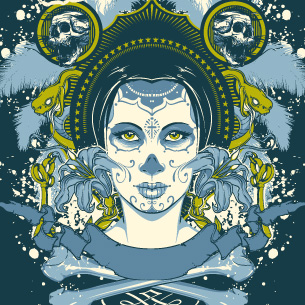 Digital design featuring detailed sugar face girl. Death diva template is available in vector format and can be used for digital printing and screenprinting. The file will be available for Adobe Illustrator, Adobe Photoshop and Corel Draw.