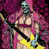 Death notes design template in vector format, featuring detailed saint guitarist now available for Adobe Illustrator, Adobe Photoshop and Corel Draw and can be used for digital printing and screenprinting .