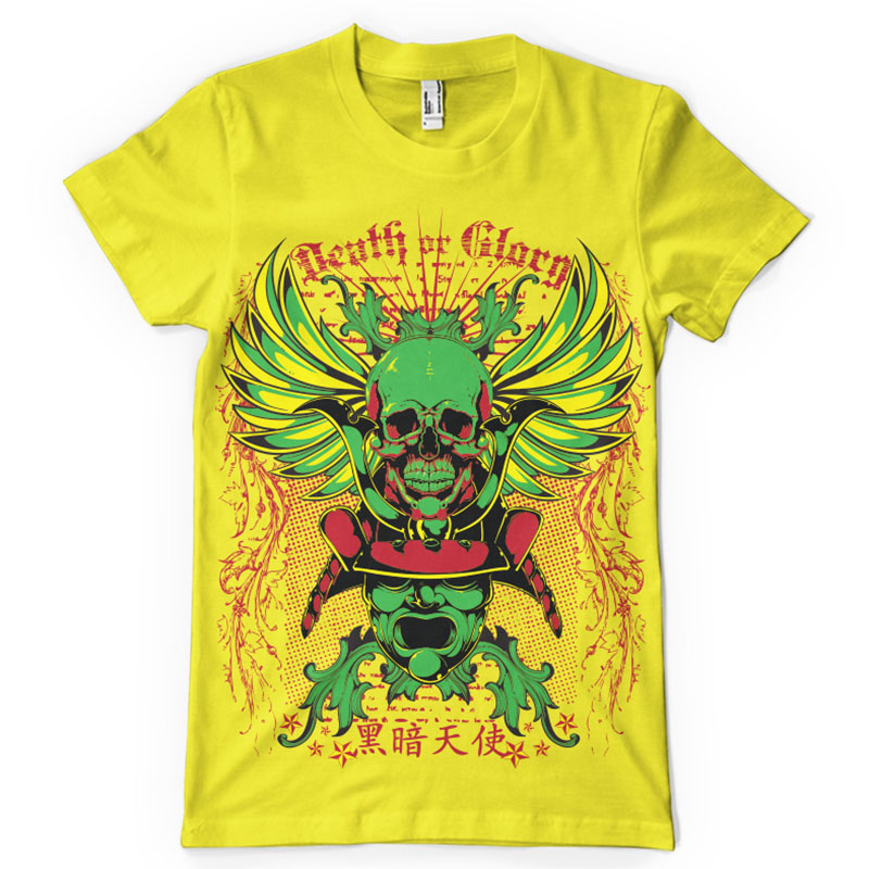 Death or glory t-shirt print features a detailed design available for Adobe Illustrator, Adobe Photoshop and Corel Draw and can be used for digital printing and screenprinting . Ready to print or use in anything you want.