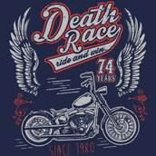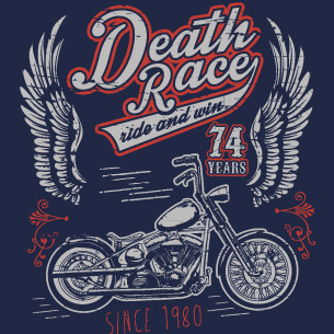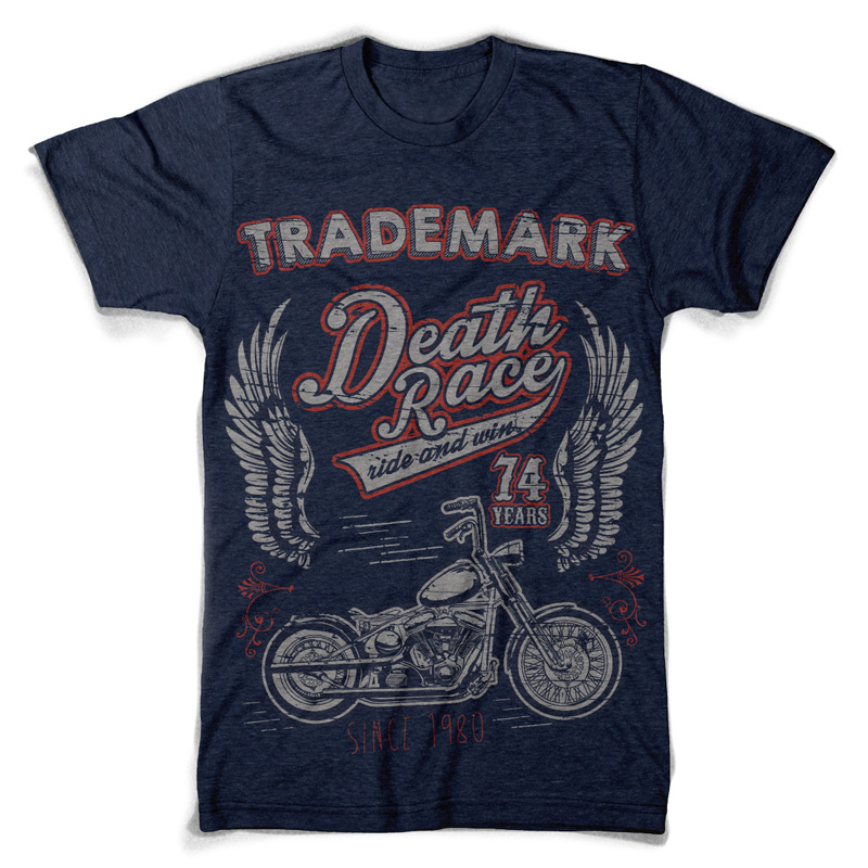 Graphic design featuring detailed race motorcycle . Death Race Trademark template is available in vector format and can be used for digital printing and screenprinting. The file will be available for Adobe Illustrator, Adobe Photoshop and Corel Draw