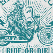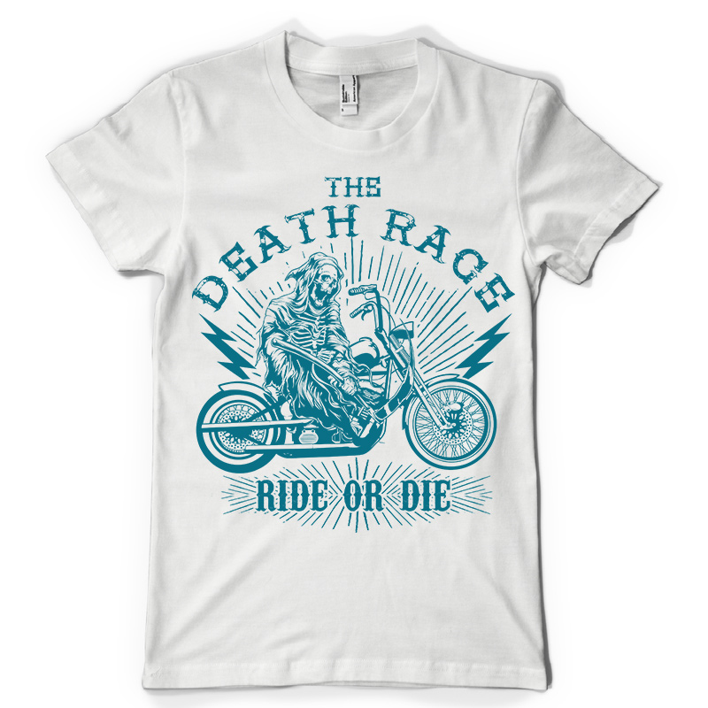 Death Race design features a Ride motorcycles detailed screen print now available for Adobe Illustrator, and Corel Draw and can be used for digital printing and screenprinting.