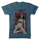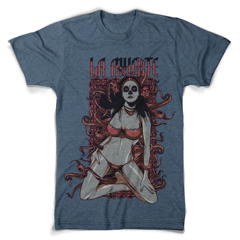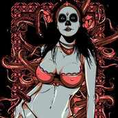 Death unfolds graphic design template in vector format, featuring detailed sexy girl representing death now available for Adobe Illustrator, Adobe Photoshop and Corel Draw and can be used for digital printing and screenprinting .