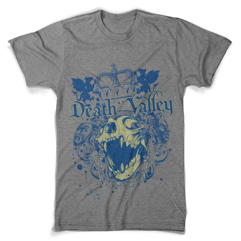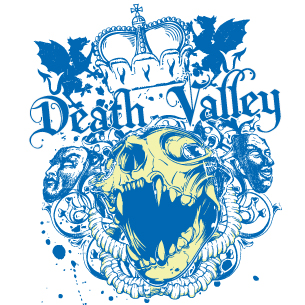 Death valley digital design template in vector format, featuring detailed screaming skull now available for Adobe Illustrator, Adobe Photoshop and Corel Draw and can be used for digital printing and screenprinting .