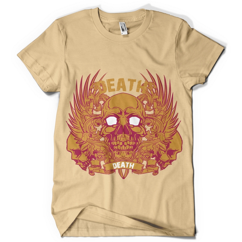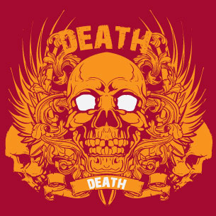 Death T-shirt template available in vector format, presents detailed happy skull of death now available for Adobe Illustrator, Adobe Photoshop and Corel Draw and can be used for digital printing and screenprinting .