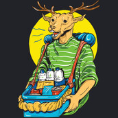 With a deer as the main character, this design tries to illustrate the deer from the different side. Bring a bag in front of him, he sells some mineral water and snacks.