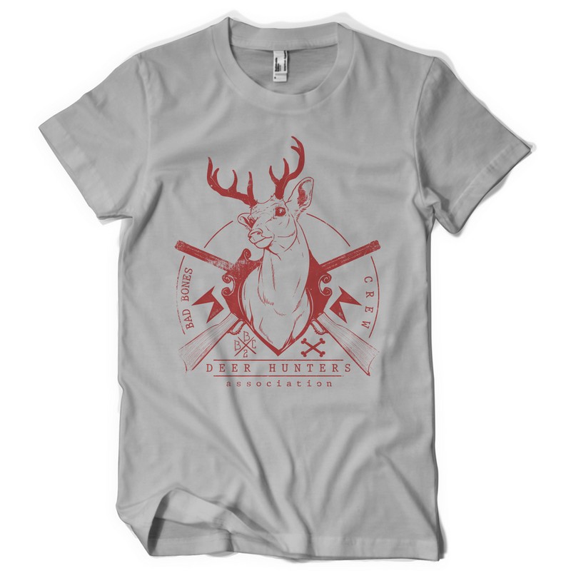 Deer hunters digital design template in vector format, featuring detailed deer logo now available for Adobe Illustrator, Adobe Photoshop and Corel Draw and can be used for digital printing and screenprinting .