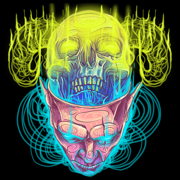 Demon face design is an illustration design. These files include PSD and PNG with a transparent background. Perfect for digital printing and screen printing.
