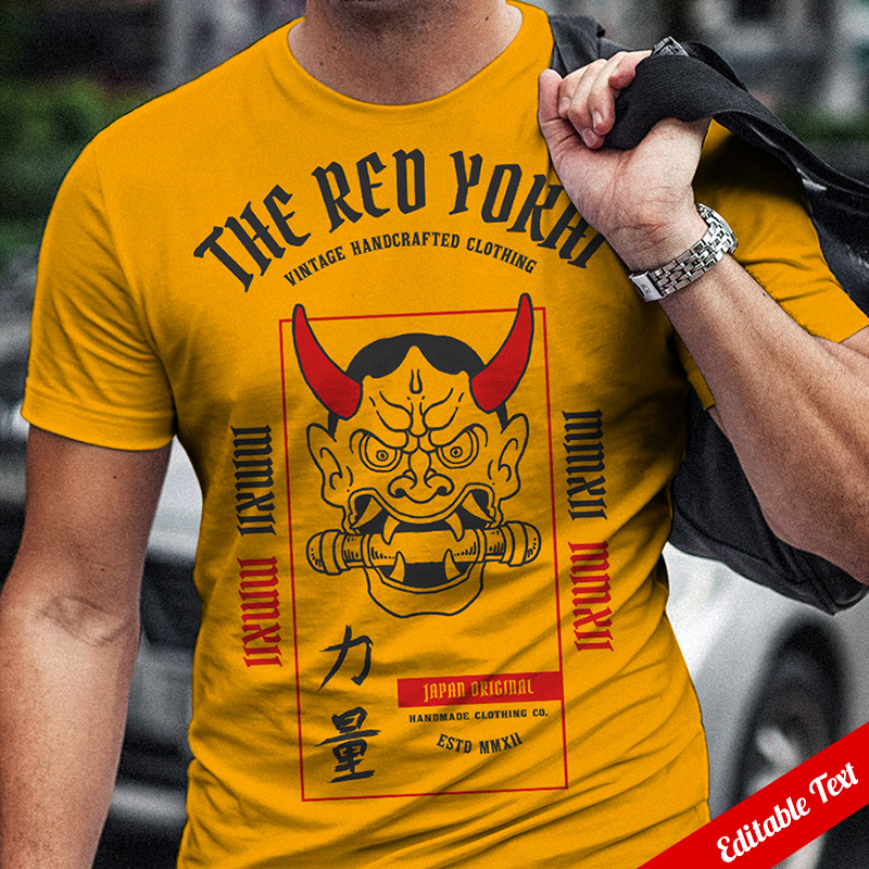 Vector illustration of japanese demon mask. Ready to print on t-shirt.
