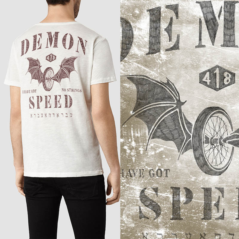 * Demon Speed * is part of my Vintage Series designs, a collection of handmade classic imagery, scanned at the highest resolution. Being handdraw gives it an unique texture. It contains a PSD file, colors are separated in layers, ready to print. It can also be autotraced in Illustrator with optimal results.