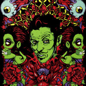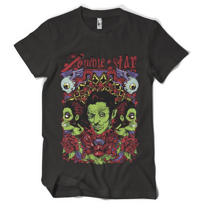 Demure graphic design template in vector format, featuring detailed mysterious zombie now available for Adobe Illustrator, Adobe Photoshop and Corel Draw and can be used for digital printing and screenprinting .