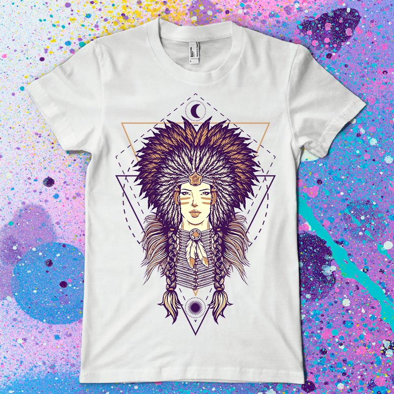 Desert Queen V2 t-shirt design features a indian girl design detailed screen print now available for Adobe Illustrator, Adobe Photoshop and can be used for digital printing and screenprinting.