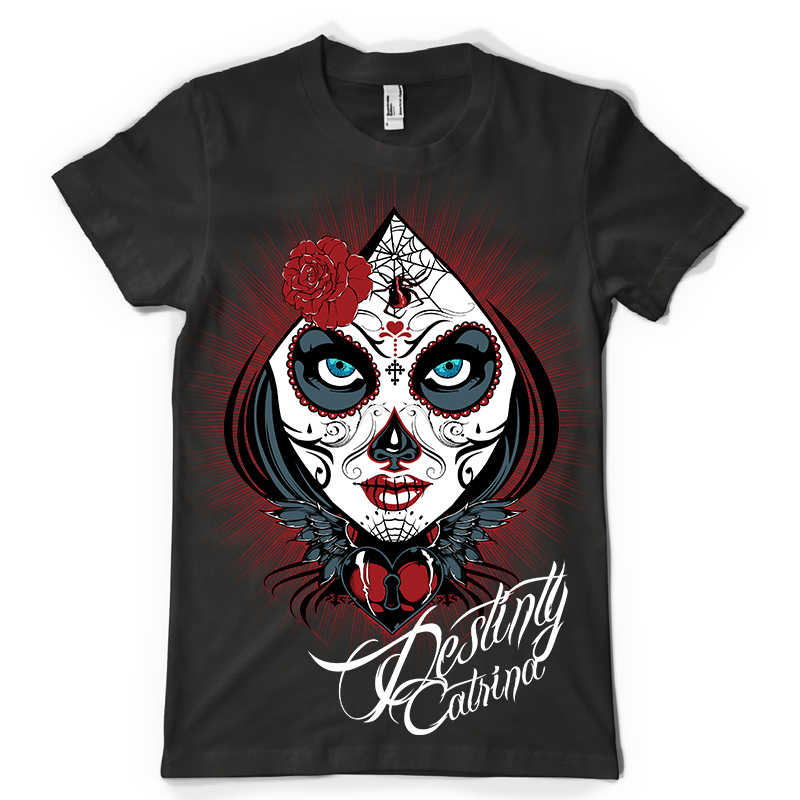 Destiny Catrina t-shirt design features a pin up woman detailed screen print now available for Adobe Illustrator and Corel Draw and can be used for digital printing and screenprinting