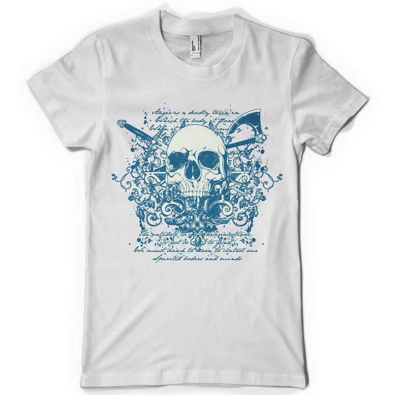 Destruction graphic design template in vector format, featuring detailed skull and text design now available for Adobe Illustrator, Adobe Photoshop and Corel Draw and can be used for digital printing and screenprinting .