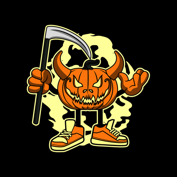 vector illustration of devil pumpkin this image is very cute for t-shirts and posters, this design is available in the form of files, CDR, AI, transparent backround PNG, JPEG, SVG, EPS, mookup not included