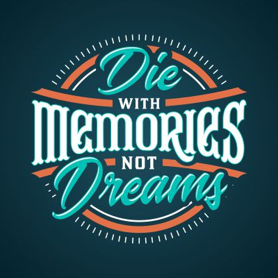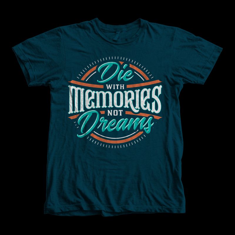 "Die With Memories, Not Dreams" Typography style t-shirt design.