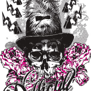 Difficult graphic design template in vector format, featuring detailed creature with weird hat now available for Adobe Illustrator, Adobe Photoshop and Corel Draw and can be used for digital printing and screenprinting .