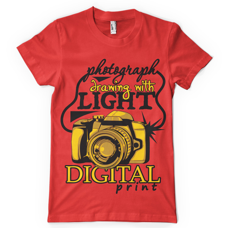 Digital camera t-shirt print features a detailed design available for Adobe Illustrator, Adobe Photoshop and Corel Draw and can be used for digital printing and screenprinting . Ready to print or use in anything you want.