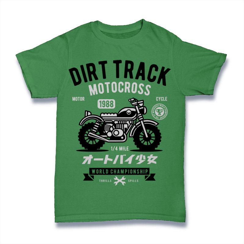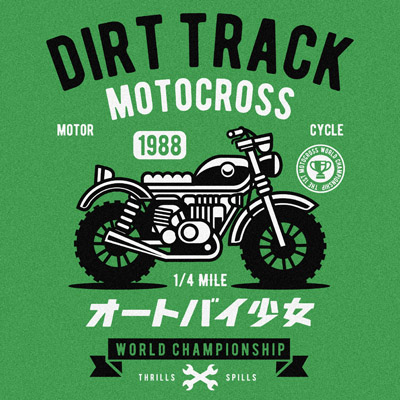 Dirt Track Motorcycle Cartoon style T-shirt design template , The files are AI, CDR, PSD separated Layers. Can be used for digital printing and screen printing.