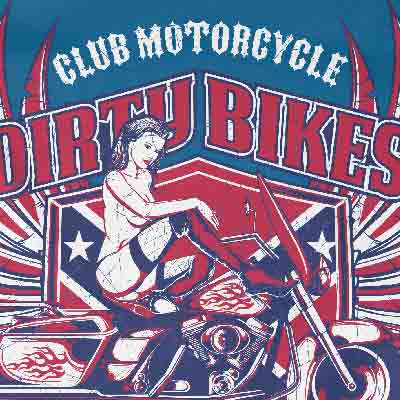 Dirty Bikers t-shirt design features a detailed screen print of sexy rider now available for Adobe Illustrator, Adobe Photoshop and Corel Draw and can be used for digital printing and screenprinting .