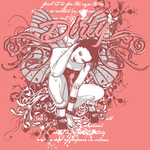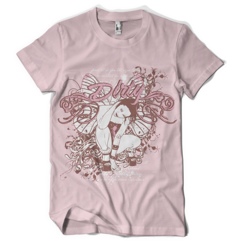 Digital artwork featuring fairytale now in a dirty edition. Dirty fairy t-shirt template will be available in vector format for Adobe Illustrator, Adobe Photoshop and Corel Draw and can be used for digital printing and screenprinting .