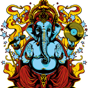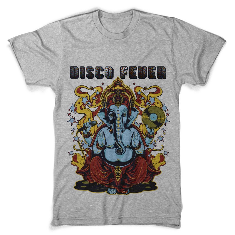 Disco fever digital design template in vector format, featuring detailed disco ganesha now available for Adobe Illustrator, Adobe Photoshop and Corel Draw and can be used for digital printing and screenprinting .