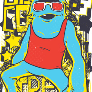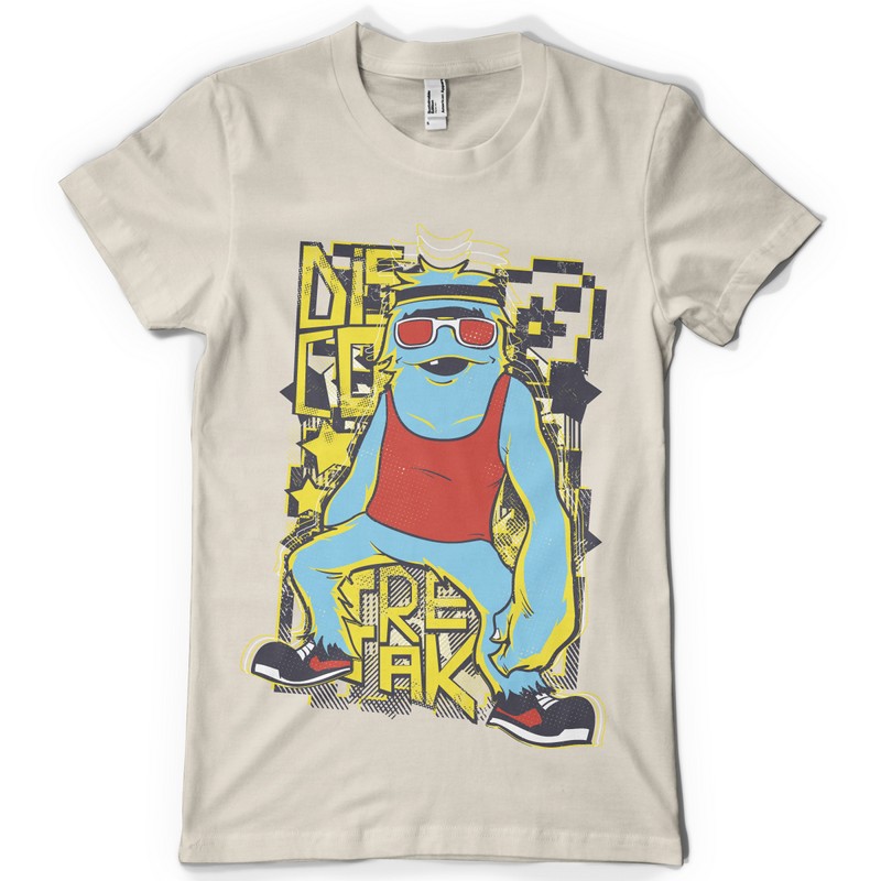 Disco freak digital design template in vector format, featuring detailed party creature now available for Adobe Illustrator, Adobe Photoshop and Corel Draw and can be used for digital printing and screenprinting .