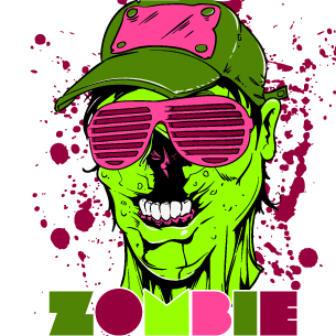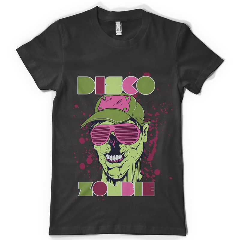 Disco zombie digital design template in vector format, featuring detailed funky zombie now available for Adobe Illustrator, Adobe Photoshop and Corel Draw and can be used for digital printing and screenprinting .