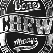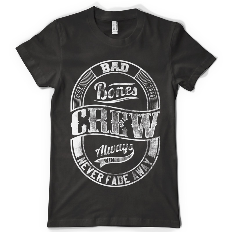 Distressed crew digital design template in vector format, featuring detailed bad bones crew optimistic message now available for Adobe Illustrator, Adobe Photoshop and Corel Draw and can be used for digital printing and screenprinting .