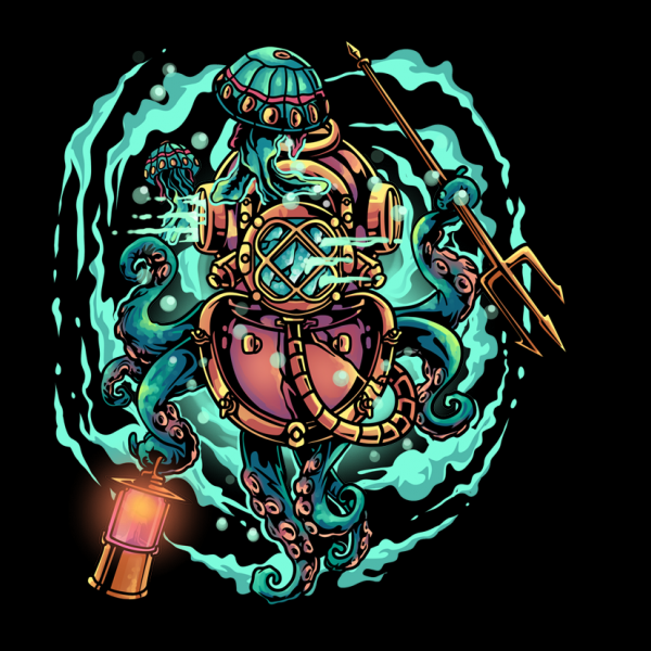 Diver Octopus illustration design with high resolution. Files include: PSD and PNG with transparent background. Perfect for digital printing and screen printing.