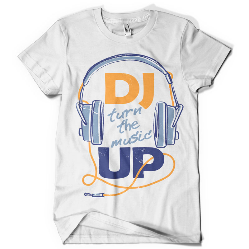 DJ turn the music UP is a graphic with cool and modern taste, ideally Fun and Trendy T-shirts. Graphic design made by Danilo De Donno (Stylographic Studio).
