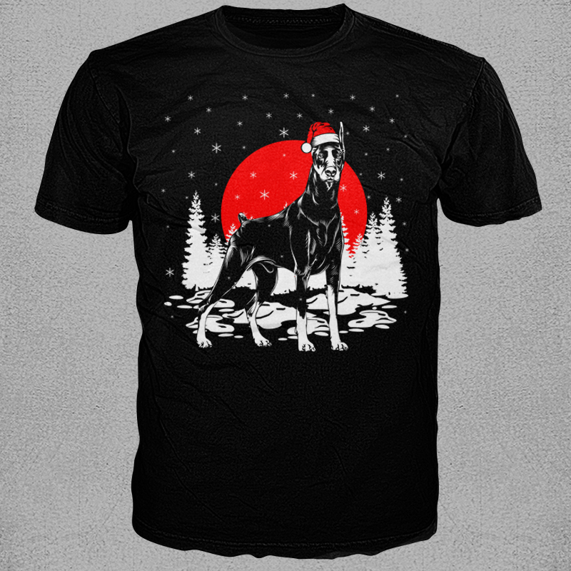 Doberman is editable vector so colors and size easy editable for any shirt colors.