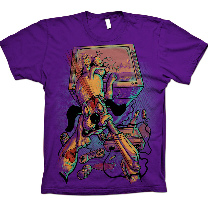 Inspired by the classic Duck Hunt. 4 colors, 3 colors on black. PSD file, color separated. Dog Hunt printed t-shirt available for Adobe Photoshop and can be used for digital printing and screenprinting . Ready to print or use in anything you want.
