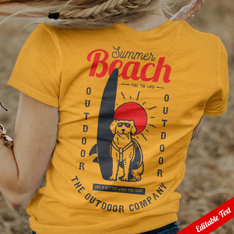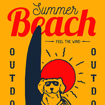 Vector illustration of dog ready to surfing on the beach. Ready to print on t-shirt.