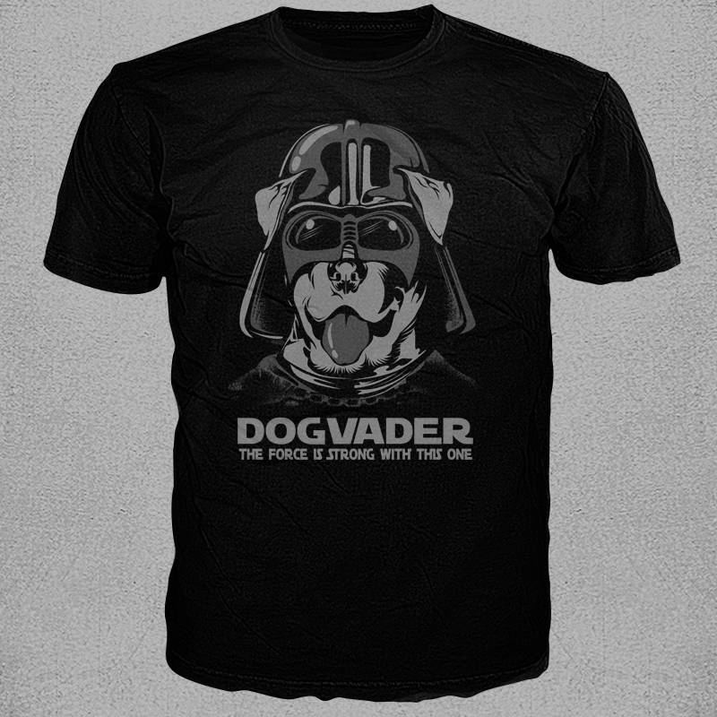 Dog Vader is editable vector words are separated, colors and size easy editable for any shirt colors.