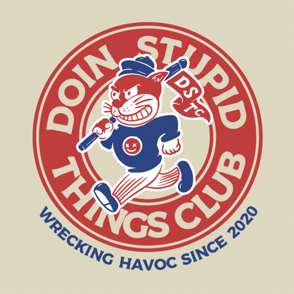 This design “ doin stupid things club ” is made in Adobe Ilustrator is ready for print.