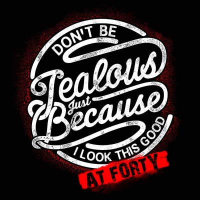 "Don't Be Jelouse Just Because I look this good at forty " Design Created with Corel X6 and Adobe illustrator, Two color Design, Can be used for Digital printing and screen printing.enjoy!