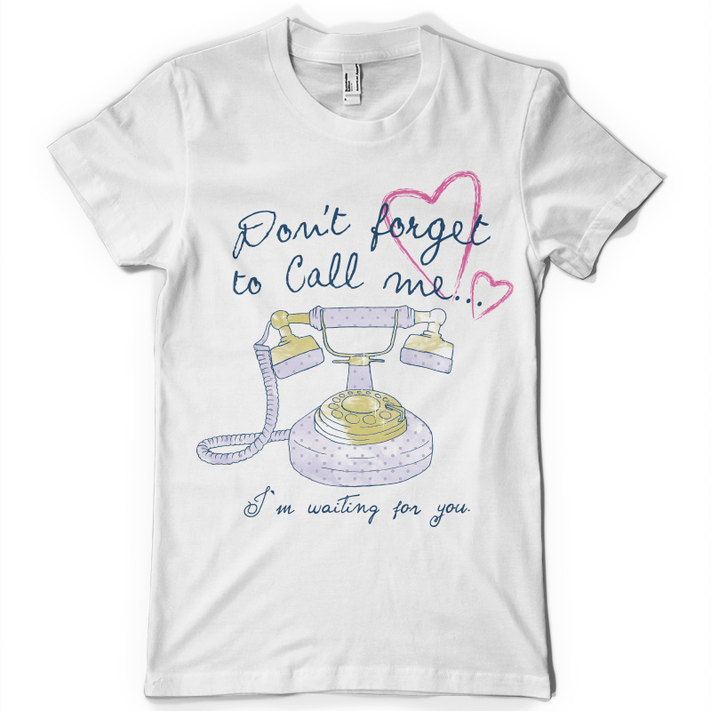 "Dont forget to call me" vector illustration made by Danilo De Donno. T-shirt template is available as an EPS file, that can be used with Adobe Illustrator, Corel Draw. For Adobe Photoshop, just save the file in PSD format and then open it in the Photoshop program.