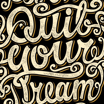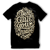 " Don't Quit your dreams " typography style. This design use 2 colours on Black t-shirt. it is high quality vector format, easy for editing process, available for Adobe Illustrator, and Corel Draw and can be used for digital printing and screenprinting.
