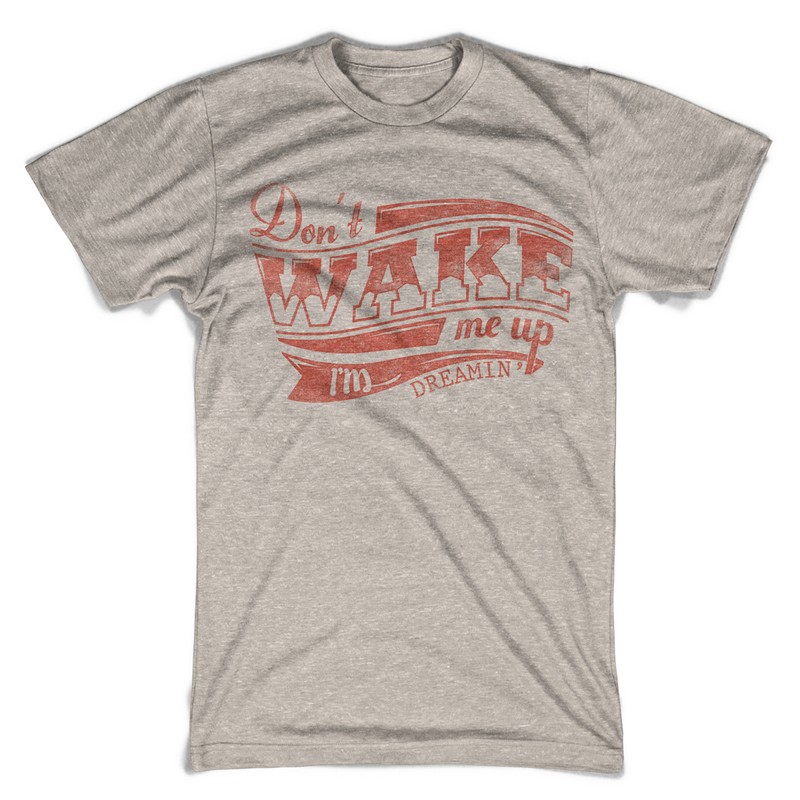 Don't wake me up graphic design template in vector format, featuring detailed fancy typography for dreamers now available for Adobe Illustrator, Adobe Photoshop and Corel Draw and can be used for digital printing and screenprinting .
