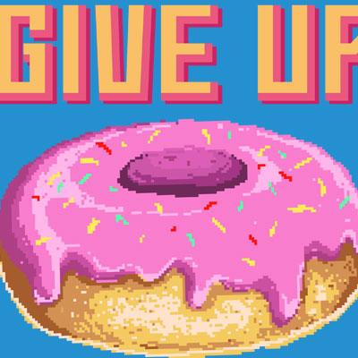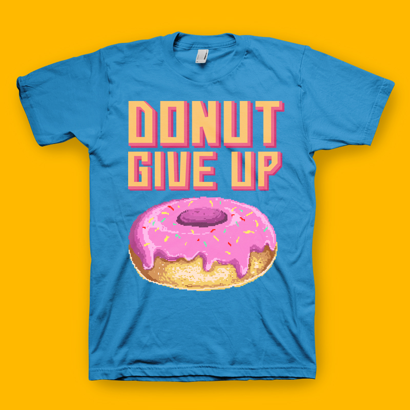 Donut Give Up..do not ever give up. Motivational funny and cute quote mixed with pixel art illustration style.