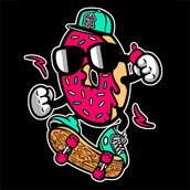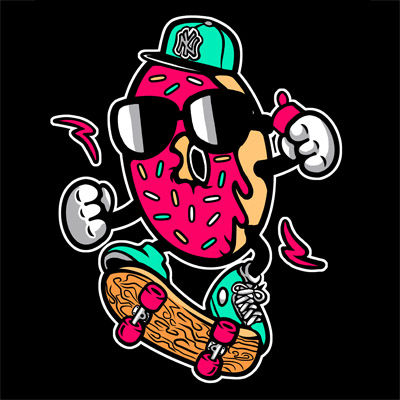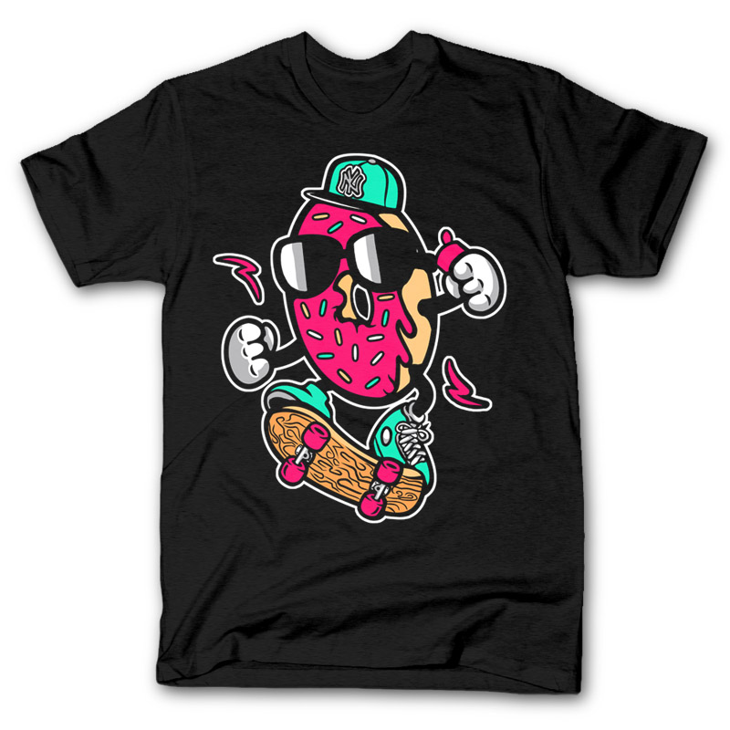 Donut Skater Cartoon character style T-shirt design template , The file is PSD separated Layers. Can be used for digital printing and screen printing.
