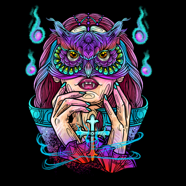Dracula Owl design is an illustration design. These files include PSD and PNG with a transparent background. Perfect for digital printing and screen printing.