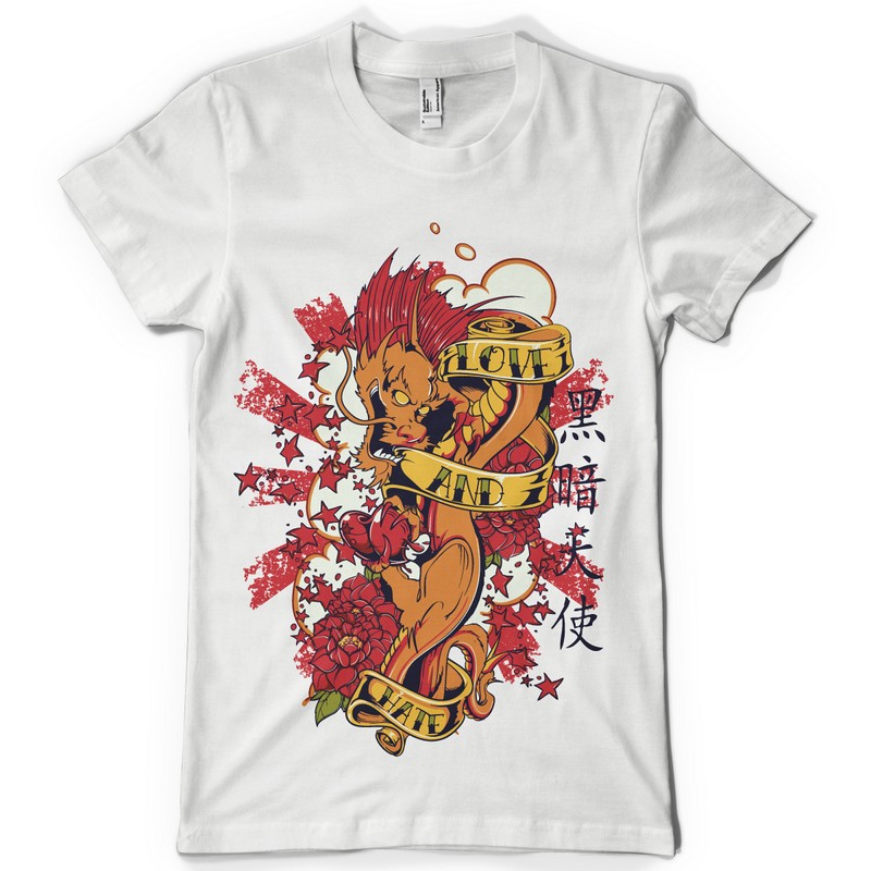 Dragon feel graphic template in vector format, featuring detailed angry dragon spitting flames now available for Adobe Illustrator, Adobe Photoshop and Corel Draw and can be used for digital printing and screenprinting .