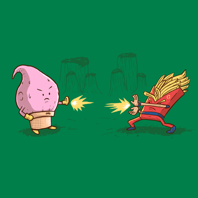 Illustration of Dragon Food that parody of dragon ball character's "buu and super saiyan son goku" and junkfood called "mc d" file is photoshop. color in sparated in layer.