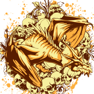 Dragon flying over a crowd of skulls
