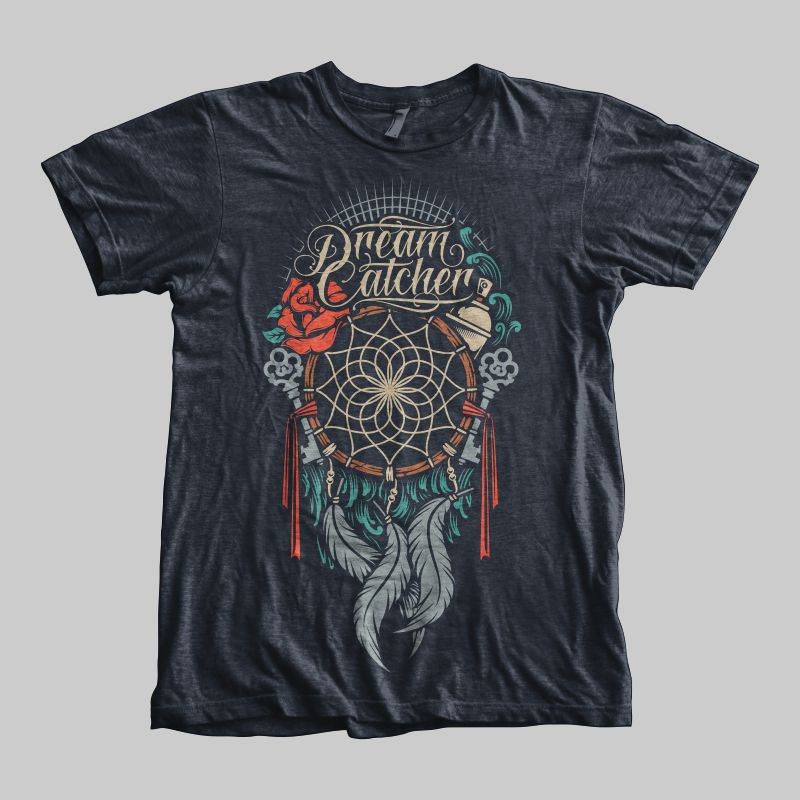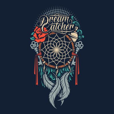 "Dream Catcher" character, cartoon style t-shirt design. This design use 5 colors on dark blue t-shirt. It's high quality vector format, easy for editing process. Available for Adobe Illustrator, PDF, PSD and can be used for digital printing and screen printing.