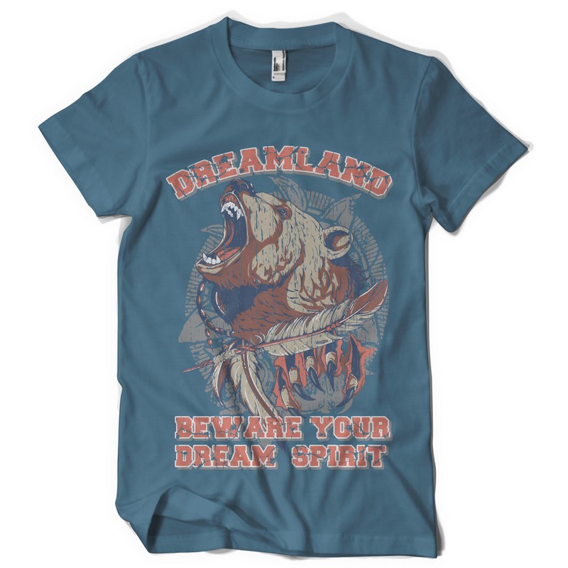 Dreamland graphic design template in vector format, featuring detailed screaming bear now available for Adobe Illustrator, Adobe Photoshop and Corel Draw and can be used for digital printing and screenprinting .