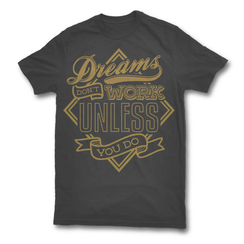 Dreams Don't Work Typography Design created with CorelDraw .1 colour print, AI, CDR, PSD File separated Layers. Can be used for digital printing and screen printing.
