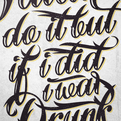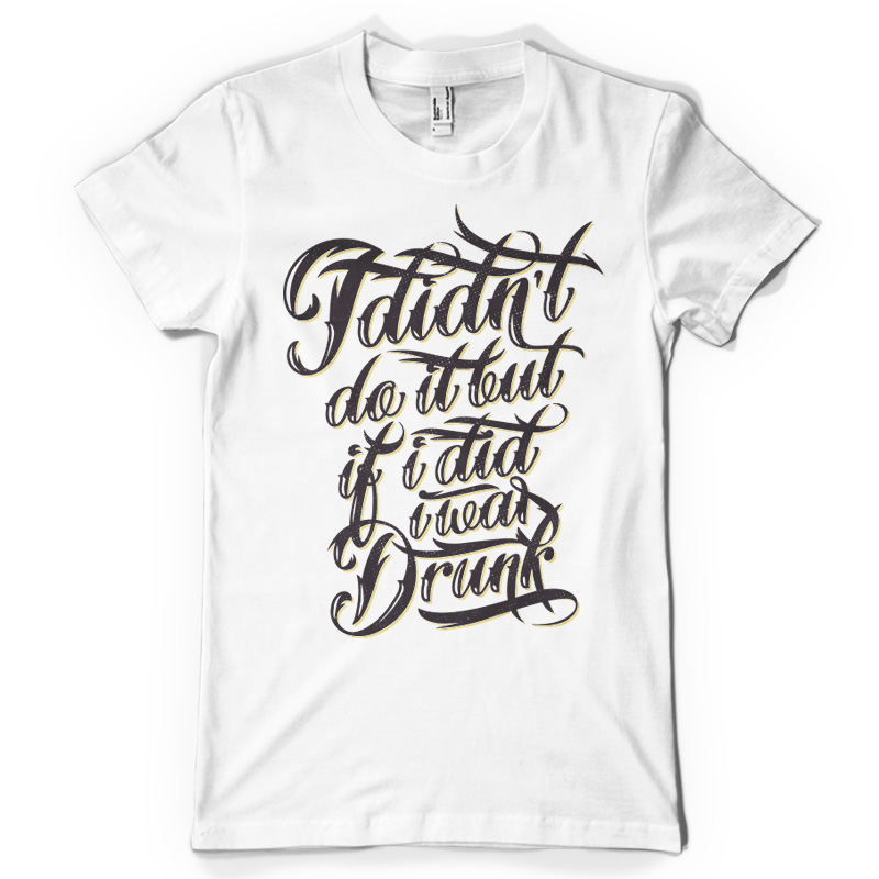 "Drunk" T-shirt design featuring typography style quote, with distressed details. The files available are suitable for Adobe Illustrator and Adobe Photoshop and can be used for digital printing and screenprinting.